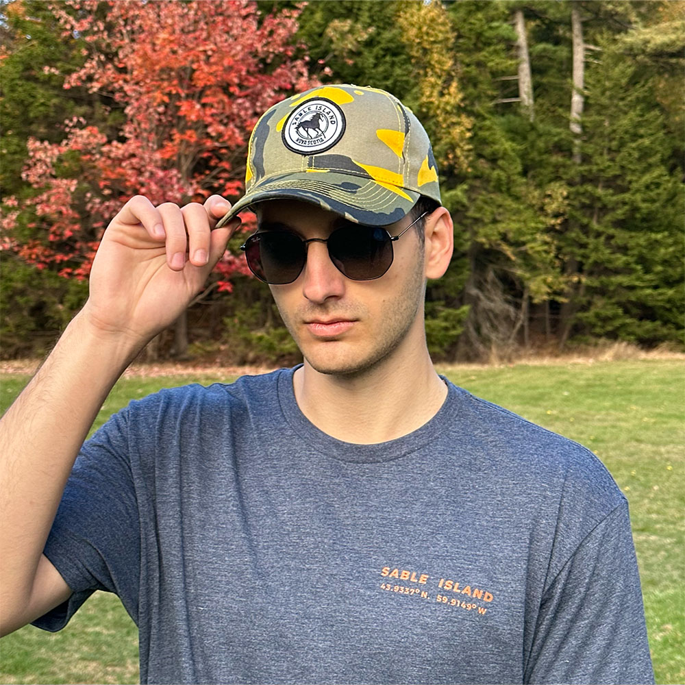 Capture the spirit of your adventure with the Sable Island Patch Cap (Vibrant Camo). This premium cap features our custom embroidered patch with the silhouette of one of Sable Islands famous wild horses, making it the perfect keepsake and travel accessory for any explorer.